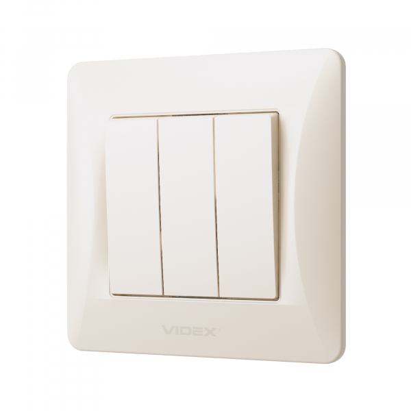 Вимикач трьохклавішний кремовий VIDEX BINERAВимикач трьохклавішний кремовий VIDEX BINERA