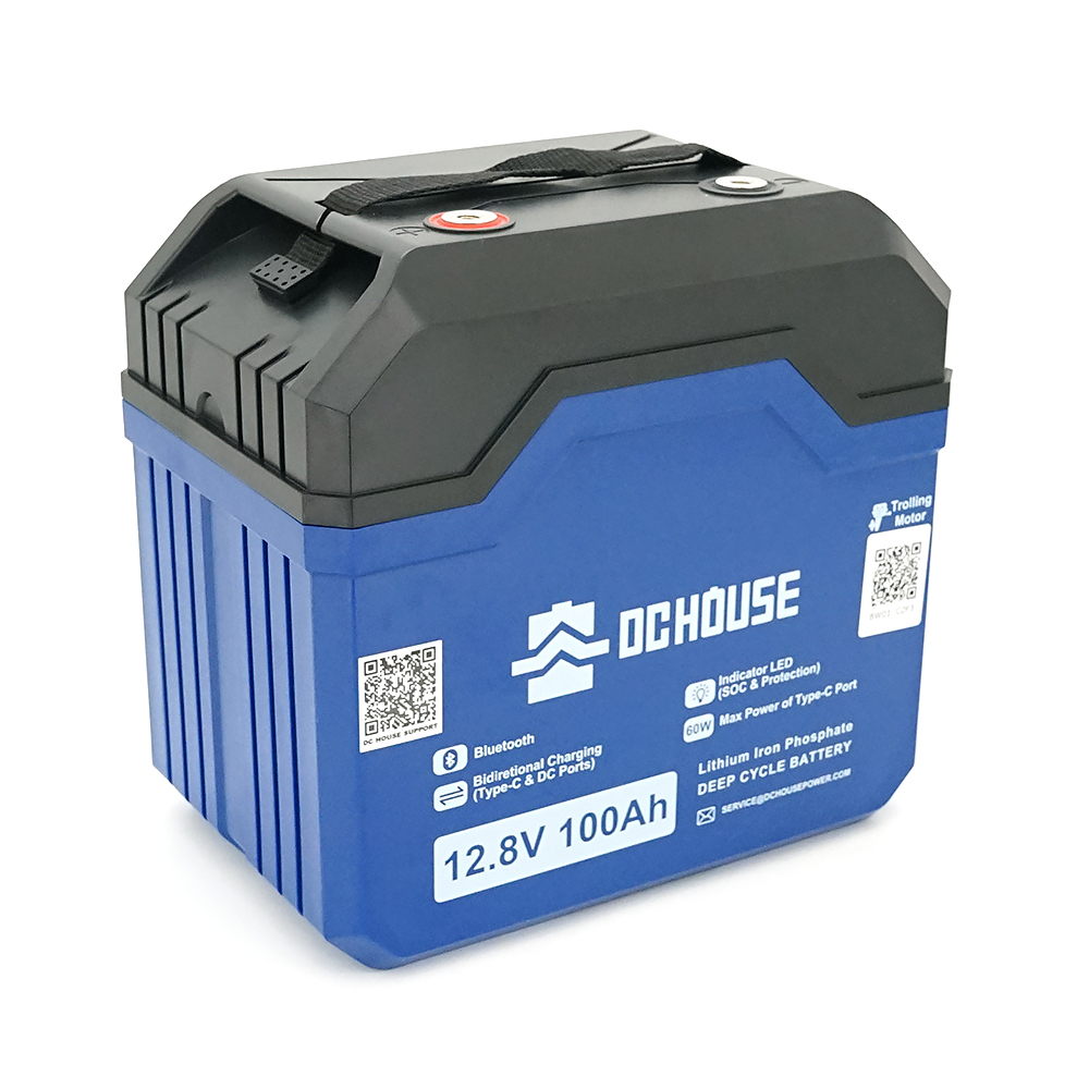 Аккумуляторная батарея DC HOUSE LiFePO4 12,8V 100Ah,(50 / 100A), Bluetooth, 0°C до 50°C, винт M8, Type-C DC Ports, 260х168х234 мм. 11.5 кг
